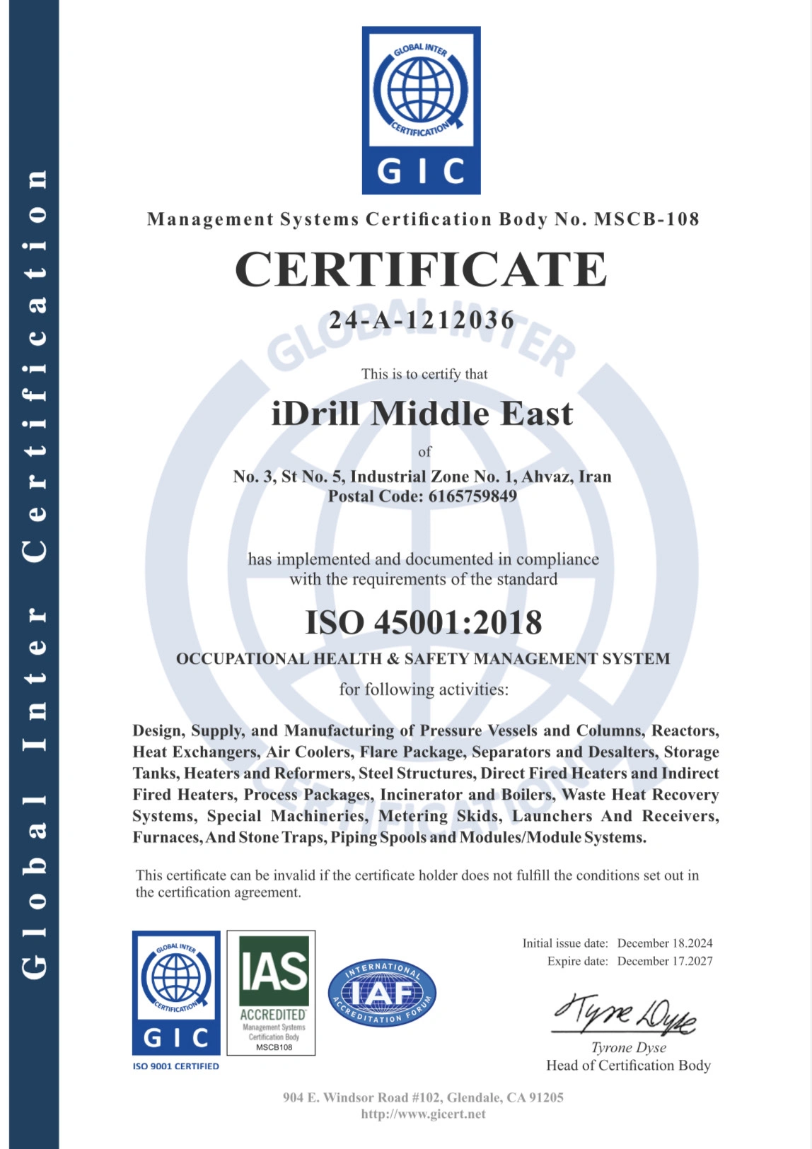 - گواهینامه صلاحیت پیمانکاری(رتبه بندی نفت و گاز، تاسیسات و تجهیزات)